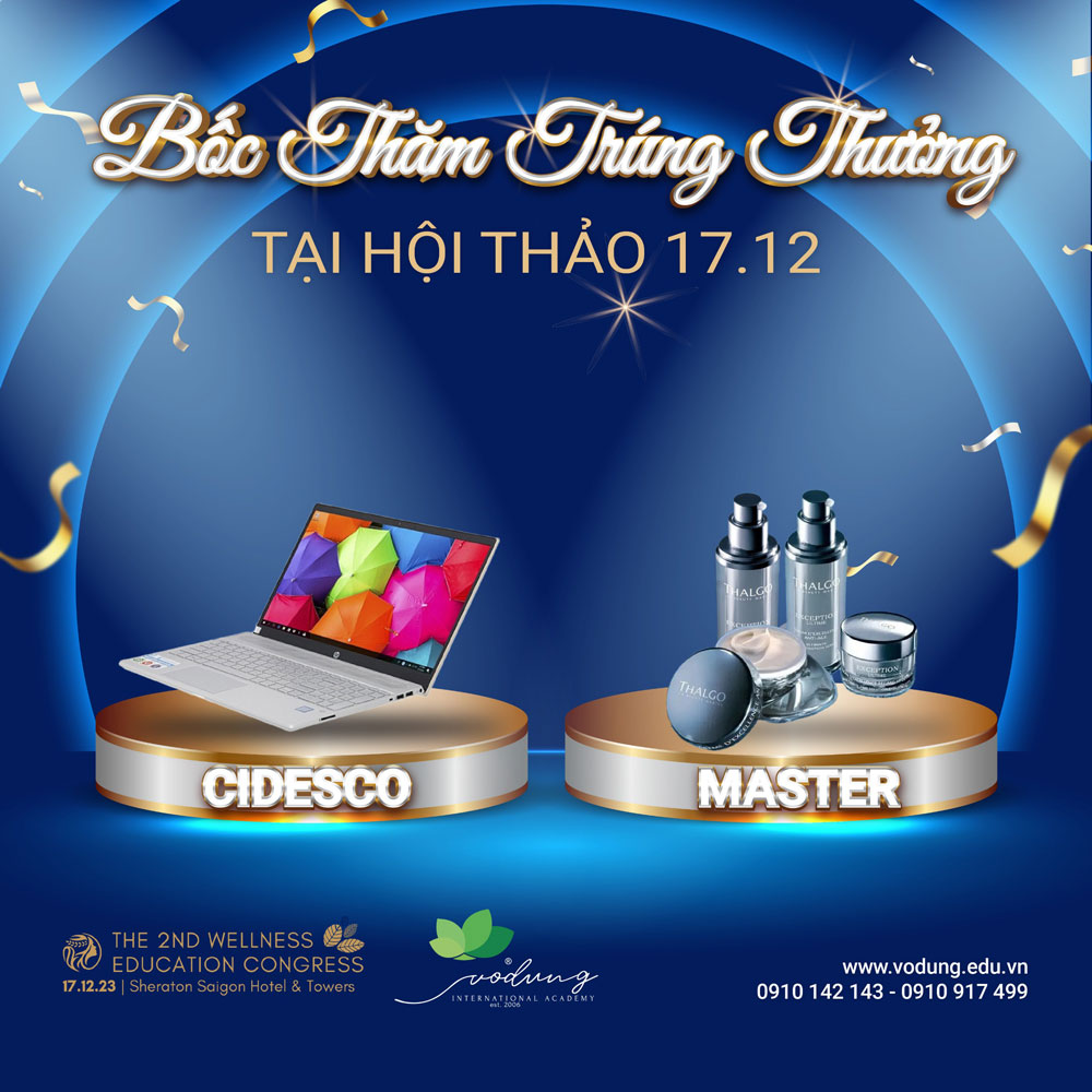 | 09:15 - 09:50 | Giới thiệu tổ chức thẩm định toàn cầu ngành SPA - Thẩm mỹ - CIDESCO - Đến từ Thụy Sỹ Chứng nhận toàn cầu cho trường học & Beauty Salon, SPA & cá nhân Cơ hội học tập và làm việc nước ngoài |